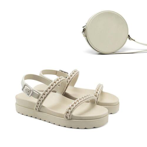 Sandália Feminina Papete Fivela Corrente + Bolsa Mini Bag - 36 - Branco