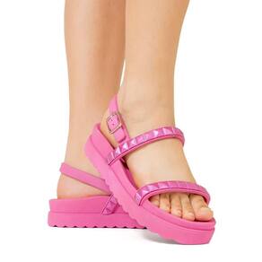 Sandália Feminina Papete Flatform Confortável Pirâmide - 38 - Rosa