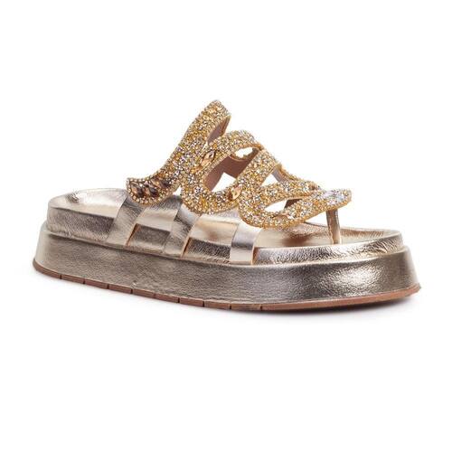 Encontre o equilíbrio perfeito entre estilo, conforto e versatilidade com a nossa extraordinária Sandália Papete Feminina com pedraria. Esta peça essencial do seu guarda-roupa harmoniza moda e funcionalidade, garantindo o máximo conforto para seus pés, em qualquer ocasião. Elaborada com materiais tecnológicos, acabamento metalizado e um solado flatform em TR resistente, esta sandália proporciona o melhor em cada passo que você dá. Cabedal em pedraria de strass e brilhos.
