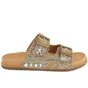Encontre o equilíbrio perfeito entre estilo, conforto e versatilidade com a nossa extraordinária Sandália Papete Feminina com pedraria. Esta peça essencial do seu guarda-roupa harmoniza moda e funcionalidade, garantindo o máximo conforto para seus pés, em qualquer ocasião. Elaborada com materiais tecnológicos, e um solado flatform em TR resistente, esta sandália proporciona o melhor em cada passo que você dá. Cabedal em pedraria de strass e brilhos.