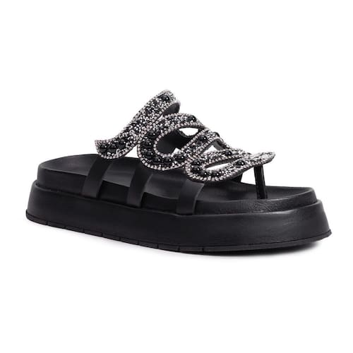 Encontre o equilíbrio perfeito entre estilo, conforto e versatilidade com a nossa extraordinária Sandália Papete Feminina com pedraria. Esta peça essencial do seu guarda-roupa harmoniza moda e funcionalidade, garantindo o máximo conforto para seus pés, em qualquer ocasião. Elaborada com materiais tecnológicos, e um solado flatform em TR resistente, esta sandália proporciona o melhor em cada passo que você dá. Cabedal em pedraria de strass e brilhos.