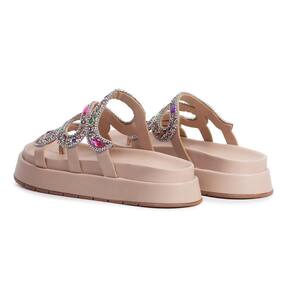 Sandália Feminina Papete Flatform Pedraria Strass Brilho - 38 - Bege