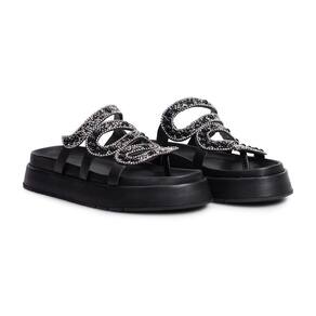 Encontre o equilíbrio perfeito entre estilo, conforto e versatilidade com a nossa extraordinária Sandália Papete Feminina com pedraria. Esta peça essencial do seu guarda-roupa harmoniza moda e funcionalidade, garantindo o máximo conforto para seus pés, em qualquer ocasião. Elaborada com materiais tecnológicos, e um solado flatform em TR resistente, esta sandália proporciona o melhor em cada passo que você dá. Cabedal em pedraria de strass e brilhos.