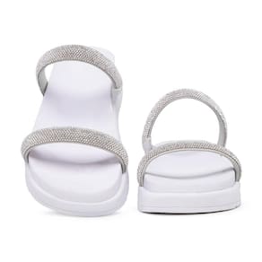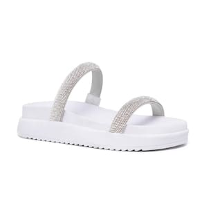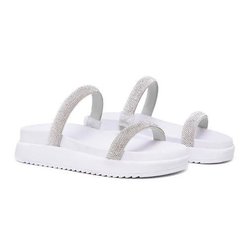 Sandália Feminina Papete Flatform Strass Confortável Tiras - 40 - Branco
