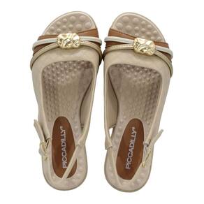 Sandália Feminina Piccadilly Brule Mascavo Ouro Off White - Cor: PA-BRU/OUR/OFF WHITE | Tamanho: 34