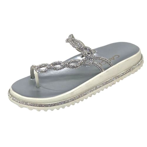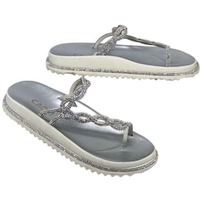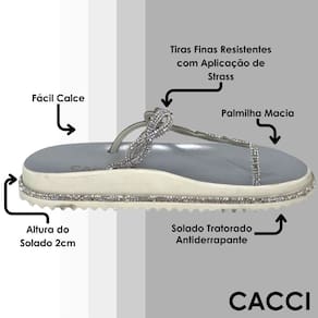 A Sandália Plataforma Cacci com Tira em Strass é uma peça de calçado deslumbrante e elegante que combina conforto e estilo de forma única. Esta Sandália é uma representação sofisticada do design contemporâneo, apresentando uma combinação perfeita de elementos metálicos e detalhes em strass.