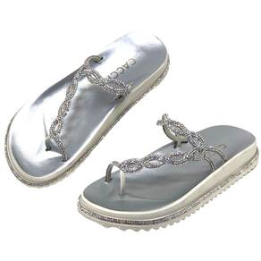 A parte superior do chinelo é onde a verdadeira beleza reside. Ela é revestida com um material metalizado de alta qualidade, conferindo um brilho sutil e um aspecto luxuoso ao calçado. As tiras são projetadas para proporcionar um ajuste seguro e confortável, enquanto adicionam um toque de glamour ao design.