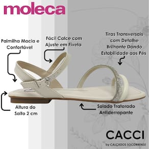 A Sandália Rasteira Moleca é a combinação perfeita de charme, conforto e praticidade! Seu design moderno apresenta tiras com acabamento brilhoso, que acrescentam um toque de glamour e sofisticação ao visual, sem abrir mão da leveza ideal para o dia a dia. Este modelo é a escolha certa para iluminar seus looks casuais, seja em um passeio descontraído ou em ocasiões especiais. O conforto inconfundível da Moleca garante pés bem acomodados durante todo o uso. Uma sandália versátil que combina com você e com todos os momentos da sua rotina!