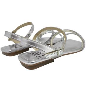 Sandalia Feminina Rasteira Brilho Casual Conforto Moleca - Prata - 37