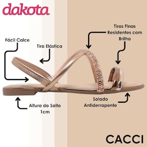 Não perca a oportunidade de adicionar um toque de brilho e elegância ao seu guarda-roupa. Adquira já a sua Sandália Feminina Rasteira Brilho Tiras Finas Dakota e sinta a diferença que um calçado bonito e confortável pode fazer!