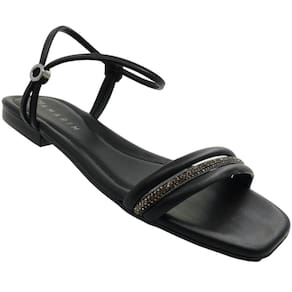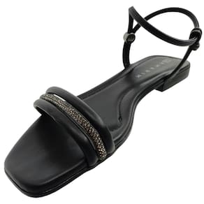 Sandália Feminina Rasteira Casual Dia a Dia Passeio Bico Quadrado com Strass Ajuste Regulável Conforto Ramarim 2421204 - 38 - Preto