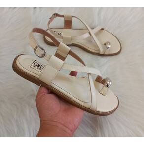 Sandália Rasteira Rasteirinha Feminina Tiras de dedo Off White detalhe metalizado no dedo é confeccionada em couro, sola antiderrapante com palmilha confort é pedida para os dias quentes. Super confortável, sola super macia.