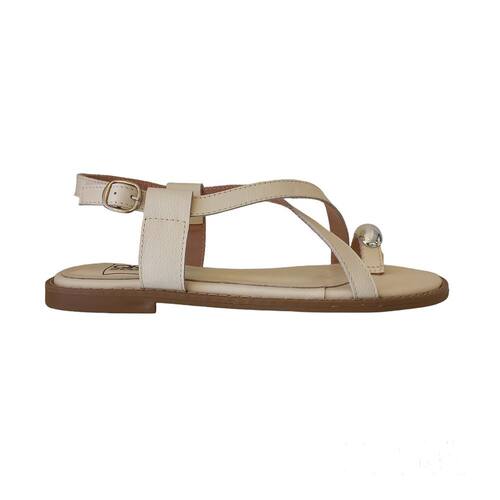 Sandália Rasteira Rasteirinha Feminina Tiras de dedo Off White detalhe metalizado no dedo é confeccionada em couro, sola antiderrapante com palmilha confort é pedida para os dias quentes. Super confortável, sola super macia.