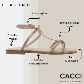 Design Encantador: Cada detalhe da sandália é meticulosamente trabalhado para criar um visual elegante. Os laços delicados adicionam um toque romântico, elevando o seu estilo a novas alturas.Conforto Inigualável: Desfrute de passos leves e confortáveis ao longo do dia, graças à palmilha macia e à construção ergonômica. A Lia Line prioriza o conforto sem abrir mão da moda.