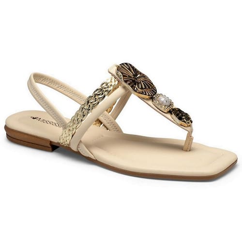 Sandália Feminina Rasteira Mississipi Pedraria Dourada: estilo e conforto de mãos dadas. Esta sandália combina a elegância das pedrarias douradas com a praticidade de uma rasteira, proporcionando um visual sofisticado sem abrir mão do conforto. Perfeita para o dia a dia ou para ocasiões especiais, ela se adapta a diversos estilos e momentos. Leve e versátil, pode ser usada com vestidos, shorts ou saias, sempre garantindo um toque de brilho e glamour. A Sandália Rasteira Mississipi é a escolha ideal para quem deseja estar na moda com comodidade e charme!