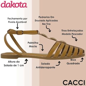 Essa sandália Dakota modelo pescador é perfeita para quem ama unir estilo retrô com o charme dos detalhes modernos. O cabedal com tiras entrelaçadas cria um visual elegante e ao mesmo tempo descontraído, ideal para quem busca um calçado versátil para o dia a dia. O toque especial fica por conta das pedrarias aplicadas em tom dourado, que iluminam o visual e trazem sofisticação na medida certa. O fechamento com fivela ajustável permite um encaixe perfeito, oferecendo segurança e praticidade ao calçar.