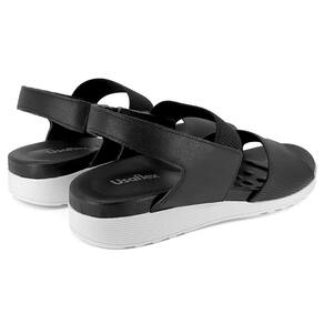 Sandalia salto plataforma com cabedal em mini tresse e napa valise. O modelo possui tecnologia Calce Fácil, com modelagem inteligente em adaptar o calçado a ergonomia dos pés.