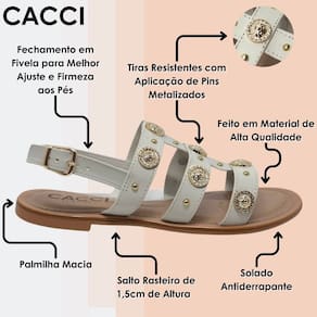 Garanta conforto e sofisticação com a nova Sandália Rasteirinha da Cacci! Ideal para compor seus looks do dia a dia com estilo e segurança. Adquira a sua e sinta a diferença em cada passo!