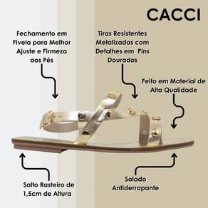 Dê um toque de estilo refinado aos seus dias com a Sandália Rasteirinha Metalizada da Cacci. Conforto e elegância caminham juntos para criar a combinação perfeita para suas produções!