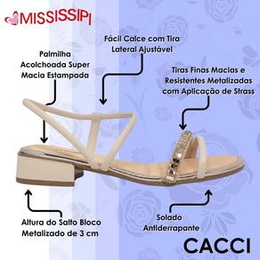 Com a Sandália Feminina Salto Baixo Mississipi, você estará pronta para arrasar com muito conforto e elegância. Não perca essa chance de adicionar essa peça única ao seu guarda-roupa!