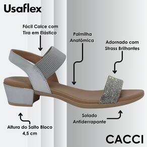 A Sandália Salto Baixo Usaflex é o equilíbrio perfeito entre conforto e estilo. Com um design atemporal e delicado, é ideal para acompanhar você em diversos benefícios, trazendo elegância e praticidade para o dia a dia.