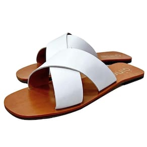 SANDALIA RASTEIRINHA TIRAS DE COURO CRUZADAS EM X LUDI BRANCO - AINE STORE