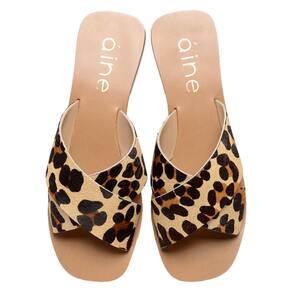 Sandalia Feminina Salto Baixo Rasteirinha Aine Store Ludi Onça - 40 - Marrom