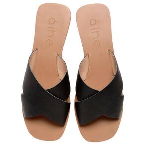SANDALIA RASTEIRINHA TIRAS DE COURO CRUZADAS EM X LUDI PRETO - AINE STORE