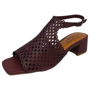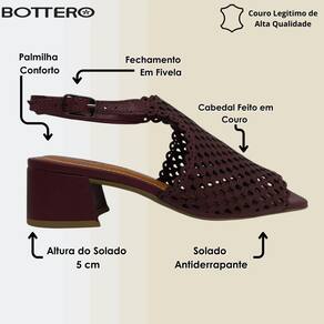 Sandália Feminina Salto Bloco Couro Moderna Elegante Bottero - 37 - Vinho