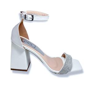 O salto bloco grosso garante estabilidade e conforto durante todo o dia, enquanto as tiras de strass conferem um brilho único e sofisticado