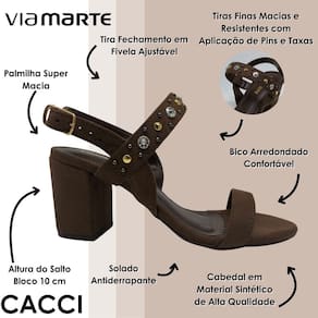 Conheça a sandália feminina que une estilo, conforto e versatilidade, perfeita para quem quer arrasar em qualquer ocasião do dia a dia com elegância. Este modelo da Via Marte traz salto médio em bloco que garante estabilidade e segurança, e um visual sofisticado com tachas e design delicado. Ideal para passeios, compromissos ou momentos especiais, ela transforma seu look com charme e praticidade, sem abrir mão do conforto ao caminhar.