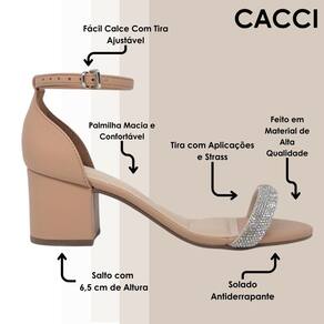 Apresentamos a você esta linda Sandália De Salto Cacci, com detalhes que farão você se encantar! Feita em materiais de alta qualidade que proporcionam ótimas experiências para você!