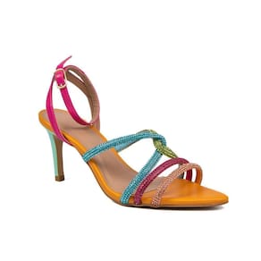 Modelo : Sandália Strass Colorida Bico Folha Salto Fino