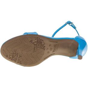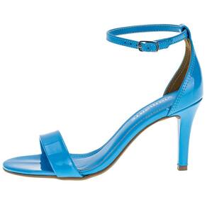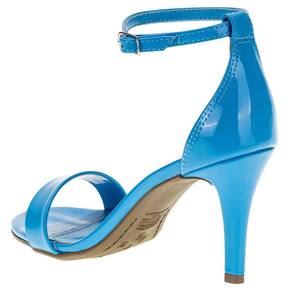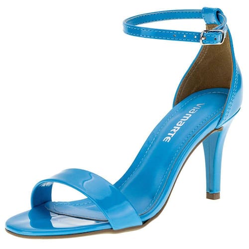 A Sandália Feminina Salto Fino Via Marte é confeccionada em material envernizado com acabamento em costura,  fechamento por fivela de ajuste,  palmilha em PU e solado em borracha antiderrapante com salto fino de oito centímetros e meio.