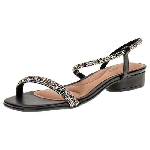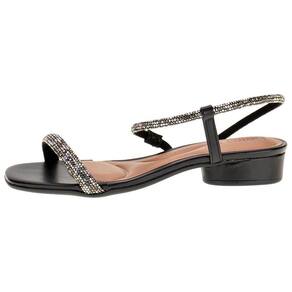 A Sandália Feminina Salto Grosso Beira Rio é confeccionada em Napa Turim com aplicação de brilho no cabedal, acabamento em costura, palmilha em PU e solado em borracha com salto baixo de três centímetros e meio.