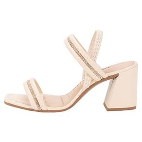 Sandália Feminina Salto Grosso Dakota Y8391, com 8,5 cm de salto, feita em material metalizado com detalhes em Strass. Acabamento colado e costurado, palmilha em PU e sola de borracha. Possui tira em elastano que envolve o calcanhar, proporcionando um calce ajustável e confortável.