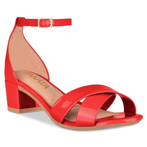 Sandália Feminina Salto Grosso Tiras Cruzadas Verniz - 38 - Vermelho