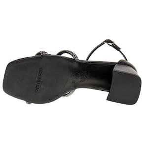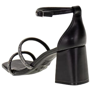 A Sandália Feminina Salto Grosso Via Marte é confeccionada em Napa com aplicação de strass e acabamento em costura. Esse modelo possui fechamento por fivela de ajuste, palmilha em PU e solado em borracha antiderrapante com salto de oito centímetros.