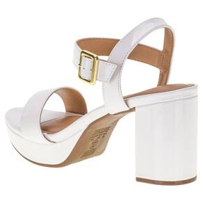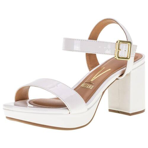 A Sandália Feminina Salto Grosso Vizzano é confeccionada em material envernizado de alta qualidade com acabamento em costura, fechamento por fivela de ajuste, palmilha em PU e solado em borracha antiderrapante com salto de nova centímetros e meia para de três centimetros.