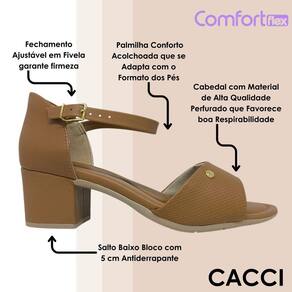 Esta sandália Comfortflex foi desenvolvida para quem deseja unir praticidade, estilo e bem-estar no uso diário. Seu salto bloco médio proporciona estabilidade em cada passo, tornando o modelo ideal tanto para a rotina quanto para ocasiões especiais. O design moderno, com tira frontal ampla e fechamento ajustável, oferece excelente encaixe, firmeza e versatilidade para combinar com diferentes produções. A palmilha macia contribui para uma sensação agradável ao longo do dia, tornando este modelo um aliado perfeito para quem prioriza conforto sem abrir mão de um visual elegante.