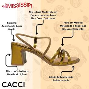 Sinta-se confiante e elegante com a Sandália Mississipi de Salto Bloco Metalizada, da coleção Primavera/Verão 2024! Esse modelo é a escolha perfeita para mulheres que desejam unir estilo, praticidade e conforto no dia a dia. Seu design moderno combina tiras finas delicadas com um toque sofisticado de brilho, criando um visual versátil e irresistível.