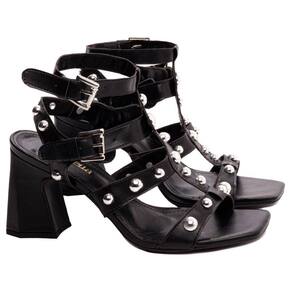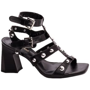 Material: Napa Preto Enfeite: Fivela de Ajuste na Cor Prata e Apliques na Cor Prata Forro: Napa na cor Preto Palmilha: 8 mm de Espessura, Espuma em EVA, Revestida em Napa Preto e Taloneira Napa Preto Salto: Grosso com 7,5 cm de Altura Revestido em Napa Preto Solado de TR com antiderrapante na cor Preto.