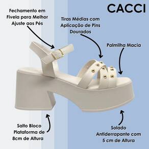 Sandália Feminina Salto Médio Platafforma Conforto Cacci - Branco - 35