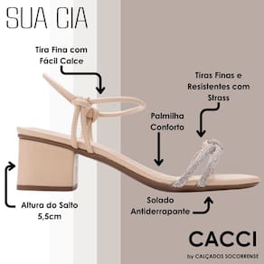 Este é o modelo dos sonhos, especialmente para quem não abre mão do conforto e de looks delicados. Seu salto bloco traz segurança ao caminhar, e suas tiras dão maior flexibilidade para os pés. Feito em napa, seus materiais incluem pequenas tiras de strass que são muito delicadas e dão um charme para este calçado que já ganhou nossos corações! Deixe ele te conquistar também, e ser sua melhor cia!