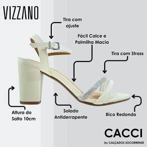 A sandália feminina Vizzano é confeccionada com material sintético. O destaque desse modelo é o salto médio grosso com 8cm de altura, que auxilia numa passada firme. Sua palmilha macia garante conforto e bem-estar aos pés.