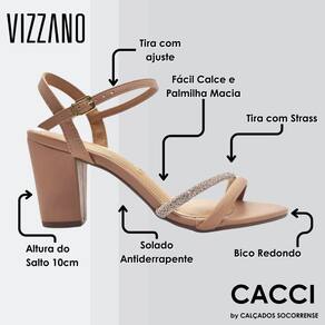 A sandália feminina Vizzano é confeccionada com material sintético. O destaque desse modelo é o salto médio grosso com 8cm de altura, que auxilia numa passada firme. Sua palmilha macia garante conforto e bem-estar aos pés.