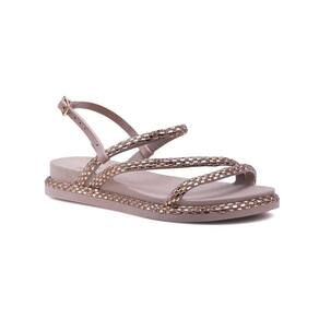 Sandália Feminina Strass Brilho Fivela Ajustável Estilo - 36 - Bege Claro