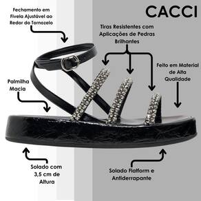 Descubra o equilíbrio perfeito entre estilo e conforto com nossa sandália flatform Cacci, uma combinação perfeita entre moda e conforto. Com um design moderno, ela oferece uma opção versátil para quem busca praticidade sem perder o charme.