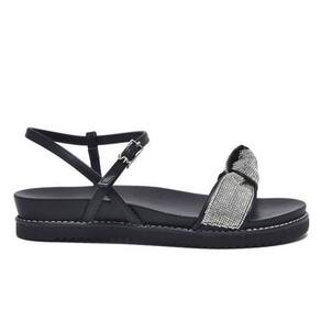 Sobre os dedos, passa uma tira larga que traz um nó como detalhe, sendo revestida de strass para adicionar um toque de brilho e sofisticação ao calçado. Desfrute de um visual elegante e um conforto excepcional com a sandália papete Via Marte, seja em eventos especiais ou no dia a dia.