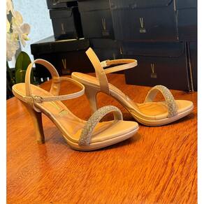 Sandália Feminina Vizzano Com Brilho Salto Agulha Fino - 36 - Bege